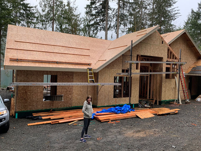 There was the land, then there was the foundation, and then...this. It's a framed-up house, like magic. But...as you might imagine, what...