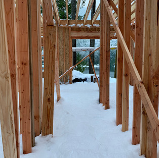 There was the land, then there was the foundation, and then...this. It's a framed-up house, like magic. But...as you might imagine, what we saw as slow, steady magic involved mind melding, back breaking, soaking, freezing, pure skill challenging grunt. And not an adjective in that bunch referred to a thing we did.